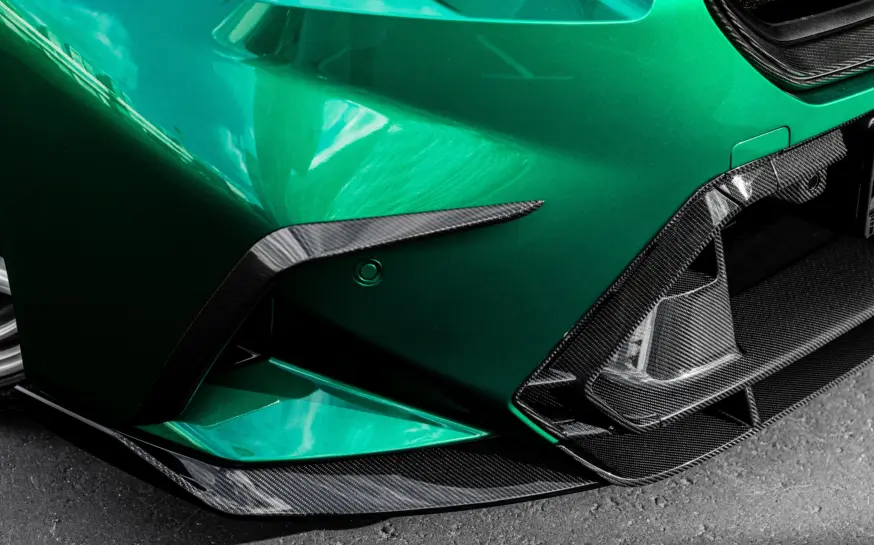 The front bumper inserts emphasize the angular lines and aggressive stance of the M5 G90, adding depth and a premium motorsport aesthetic. Their sculpted shape enhances airflow while reinforcing the vehicle’s performance-driven DNA.