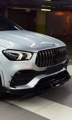 Mit diesem Karosserie-Kit können Sie einen wirklich sportlichen Charakter des Autos erwecken und ihn optisch betonen. Der Mercedes-Diffusor aus Carbon oder Basalt wird zu einer Zierde des Fahrzeughecks, indem er dessen Massivität betont und ein Gefühl von Zuverlässigkeit und Prestige vermittelt.