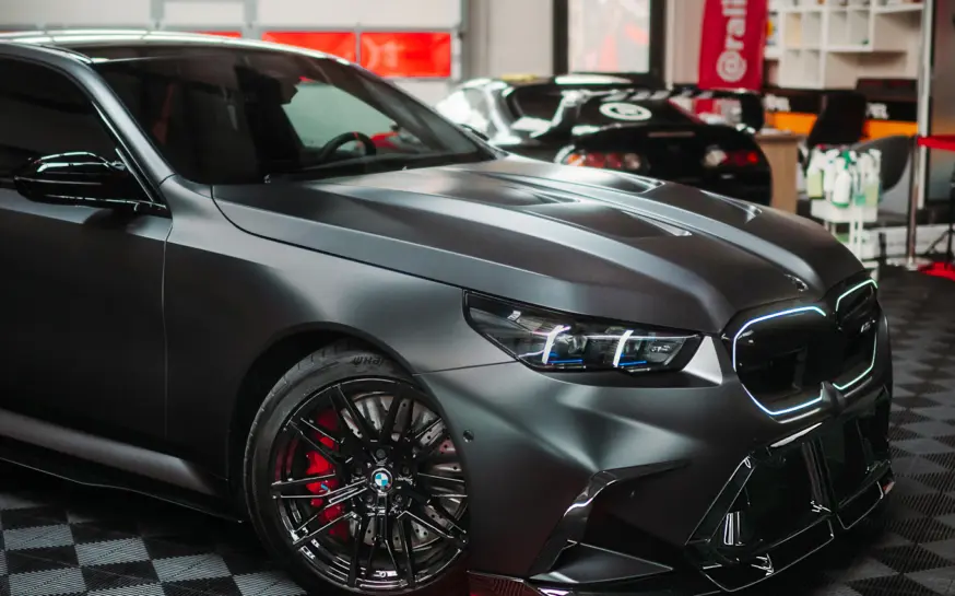 Der Frontsplitter wurde speziell für den BMW M5 G90 entwickelt und garantiert eine werksähnliche Integration in die Frontschürze. Die Linienführung bleibt erhalten, während der Look des Fahrzeugs noch kraftvoller und sportlicher wird.