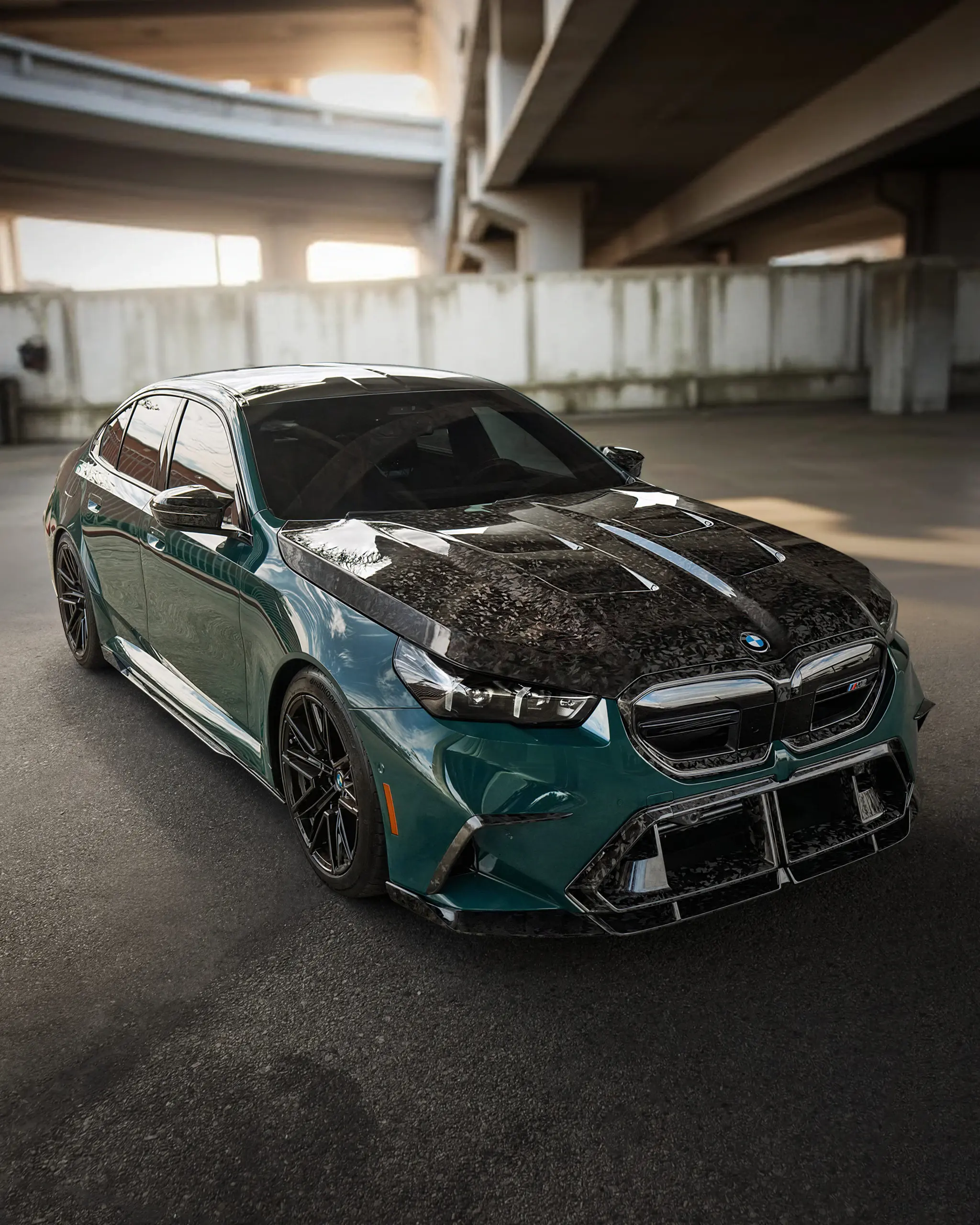 Harmonischer Kontrast – auf einem dunkelgrünen Fahrzeug erzeugt geschmiedetes Carbon einen edlen Kontrast und unterstützt den maßgeschneiderten Look.