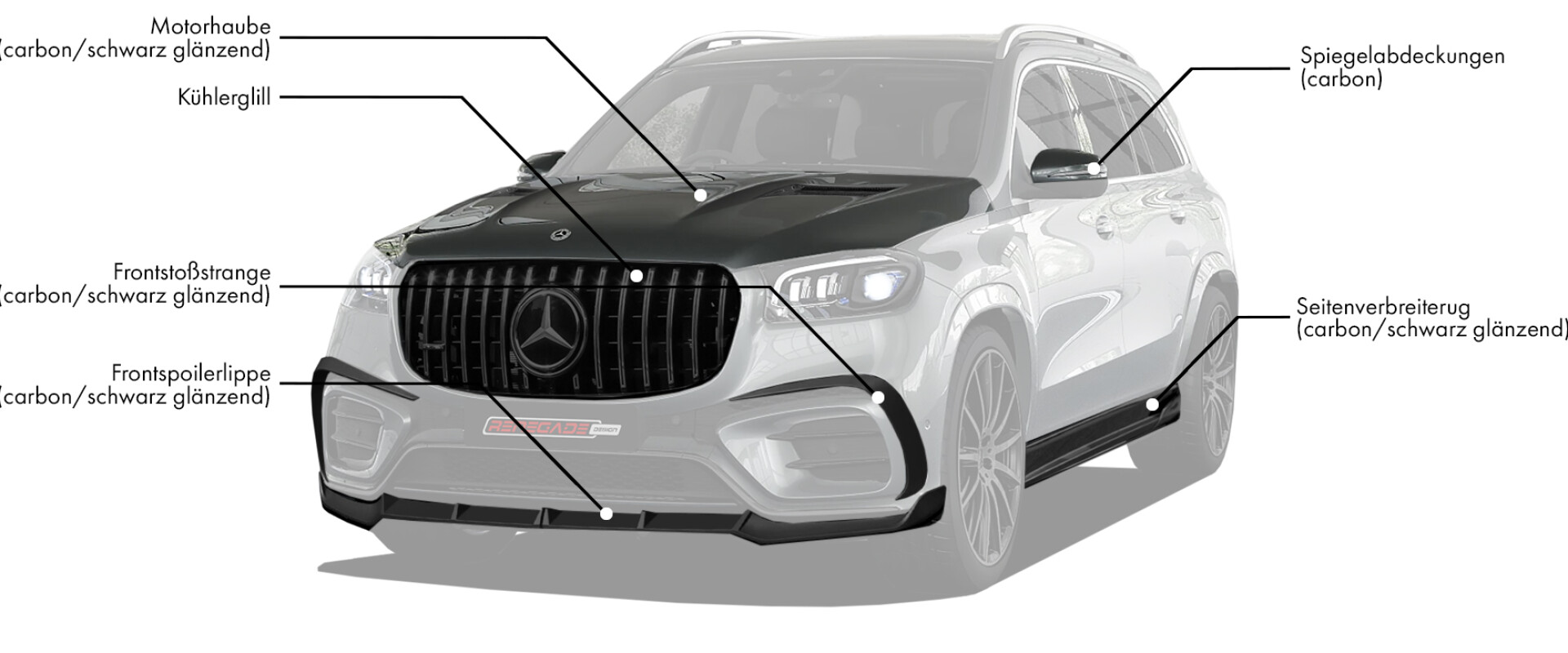 Wir stellen Ihnen das Bodykit für den Mercedes-Benz GLS 2024 vor — das exklusive Body Kit von Renegade Design. Dieses Premium-Zubehör wurde sorgfältig gefertigt, um sowohl die Optik als auch die aerodynamische Effizienz Ihres GLS zu verbessern und einen neuen Standard für Luxus und Leistung zu setzen.