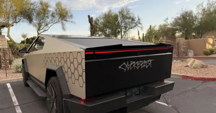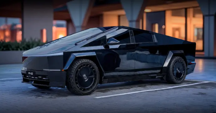 Das Bodykit wurde so konzipiert, dass es die charakteristischen Linien des Cybertrucks aufgreift und verstärkt. Keine Glättung, keine Abrundung — stattdessen werden die Winkel betont, die Breite erweitert und die Optik aufgeladen. Das Fahrzeug wirkt wie ein Konzeptauto, das direkt von einer Designmesse kommt.