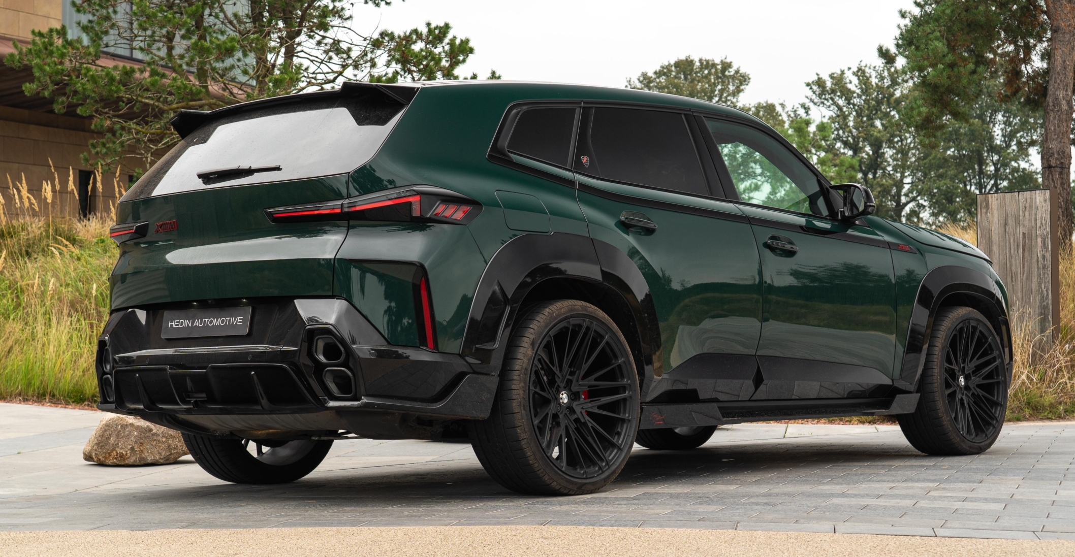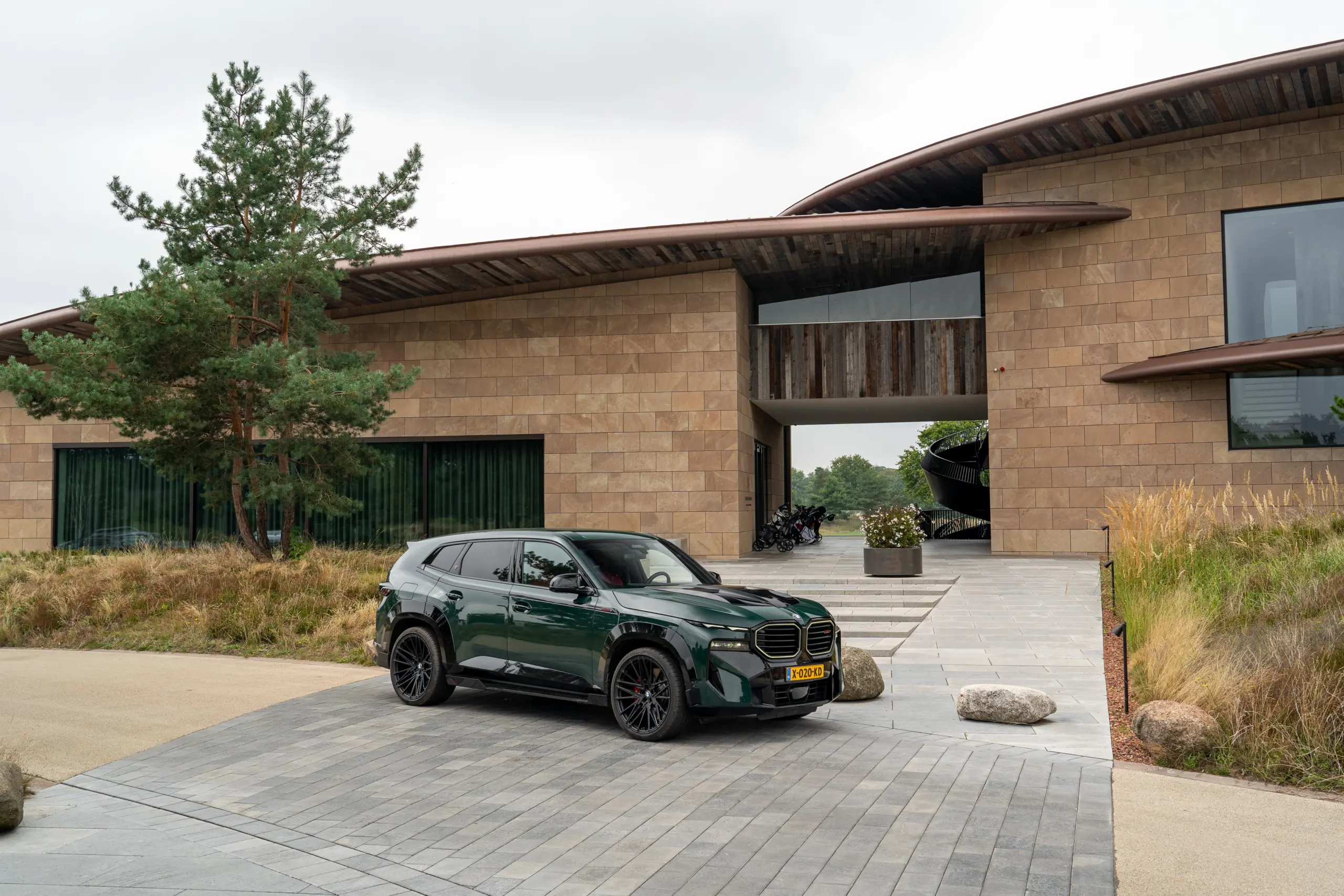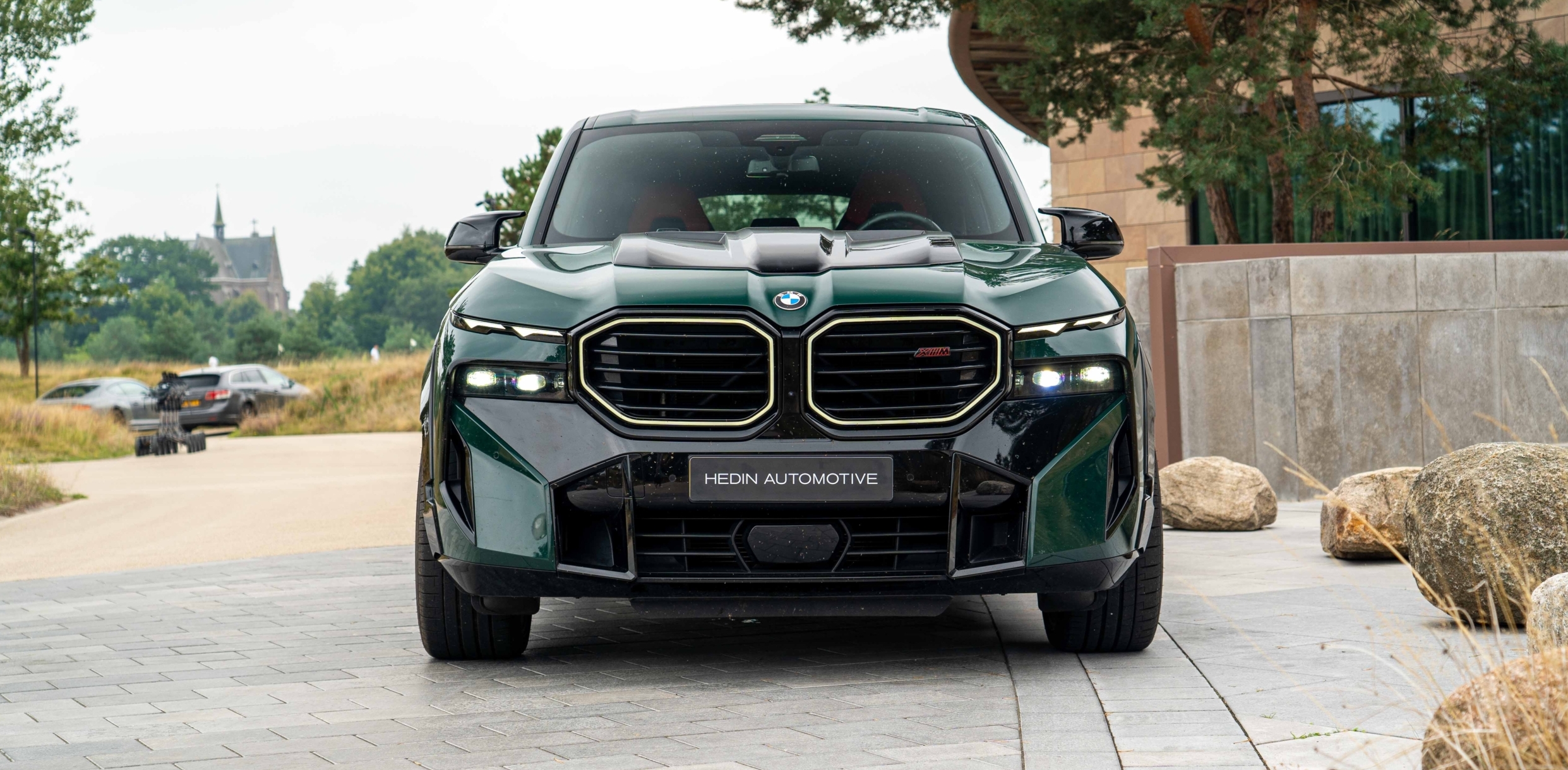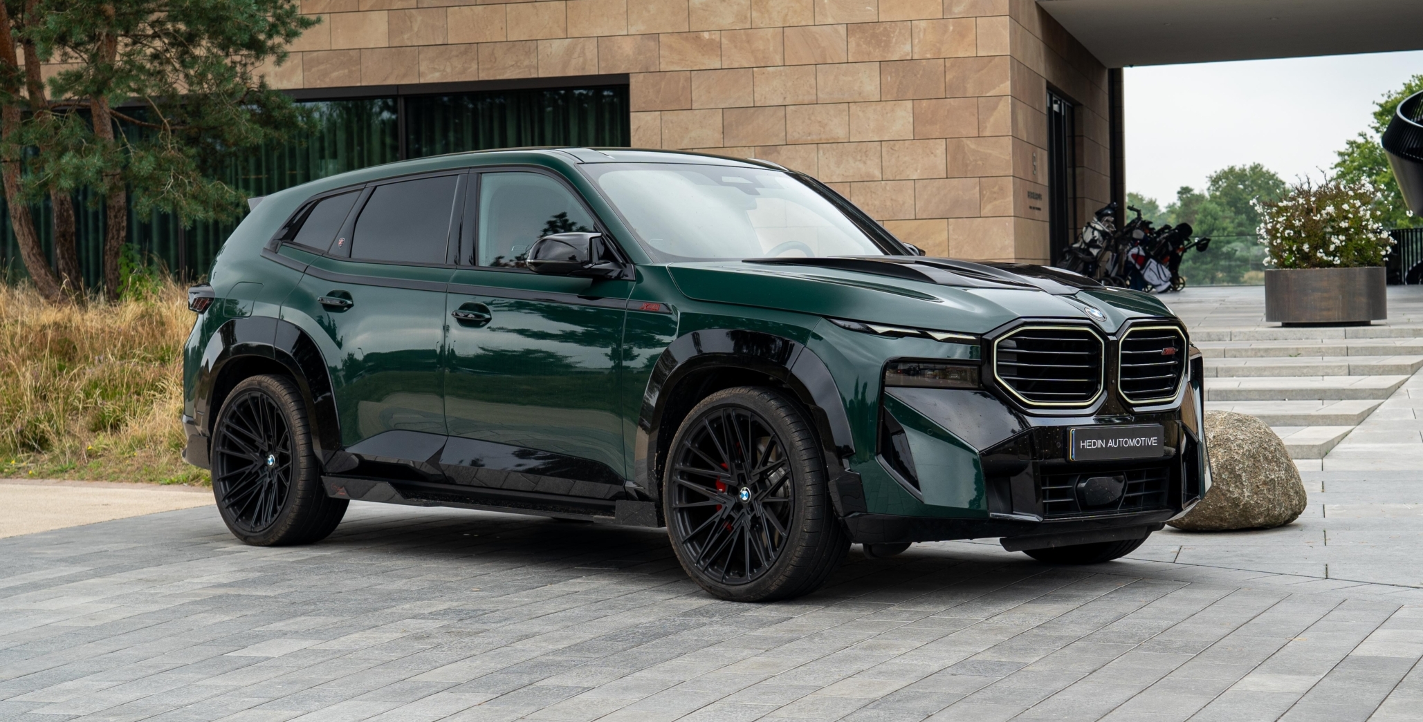 Green BMW XM with gloss black kit in Netherlands